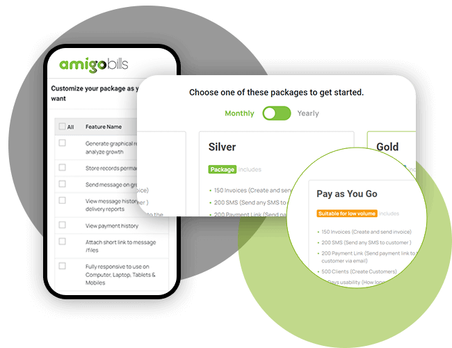 AMIGOBILLS comes with a fully-featured suite of invoicing and online payment for your business